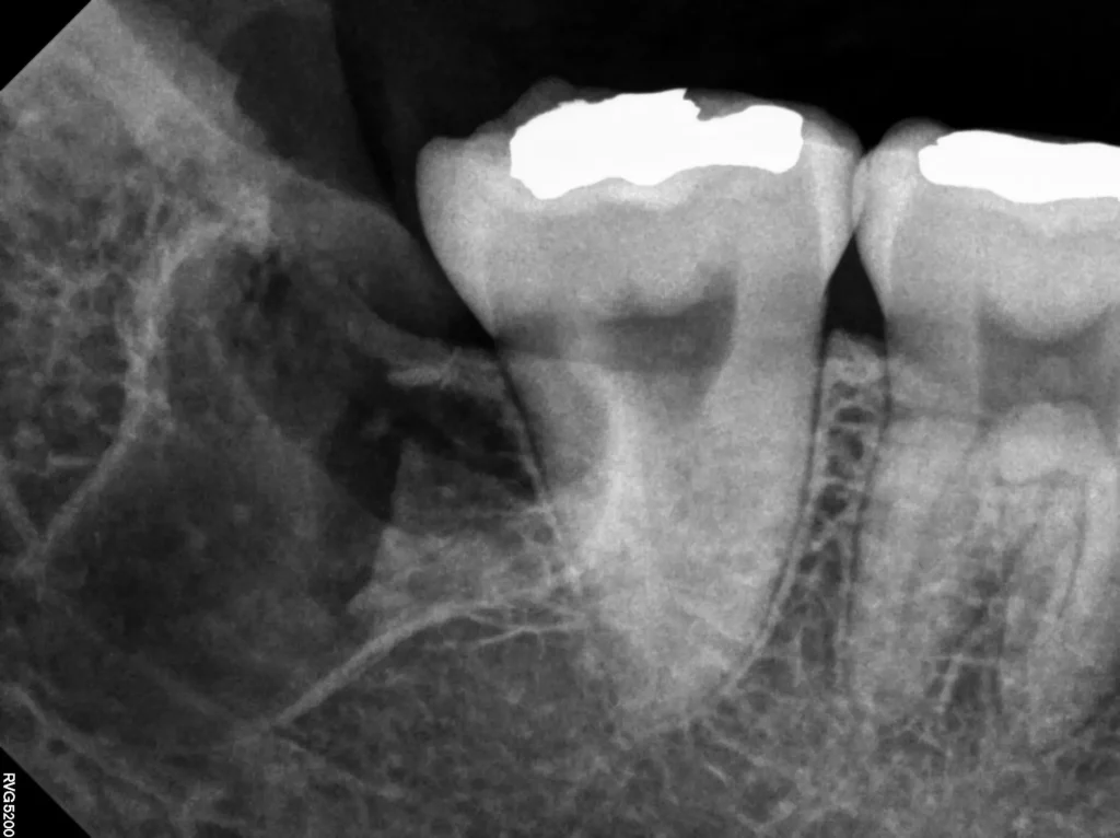 환자분께서는 왼쪽 아래 사랑니 부위가 붓고 통증이 심해 내원하셨습니다.